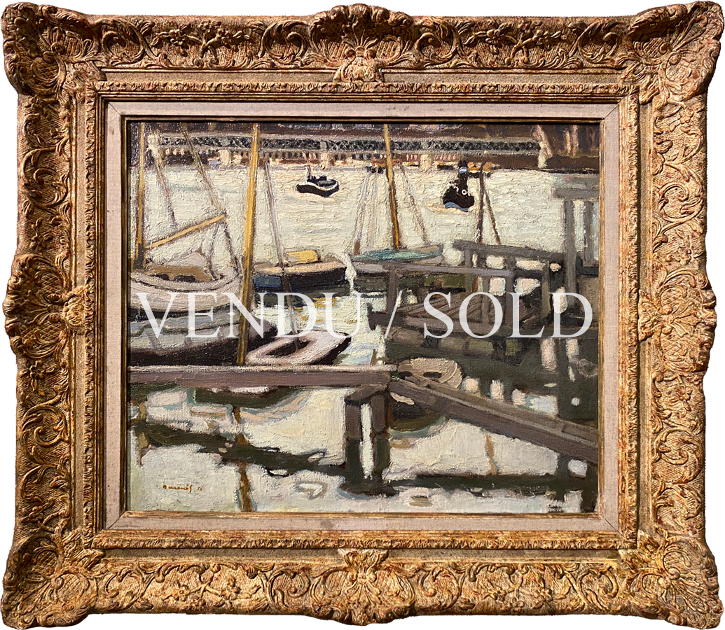 Some years ago he went to live in Biot, a small village rising on a hillside a mile or so behind the Mediterranean and midway between Cannes and Nice. Here I think he has achieved his finest works. The warmth of Provence, the port scènes he executes so brilliantly, all look as though they were placed there specially for him to paint”.