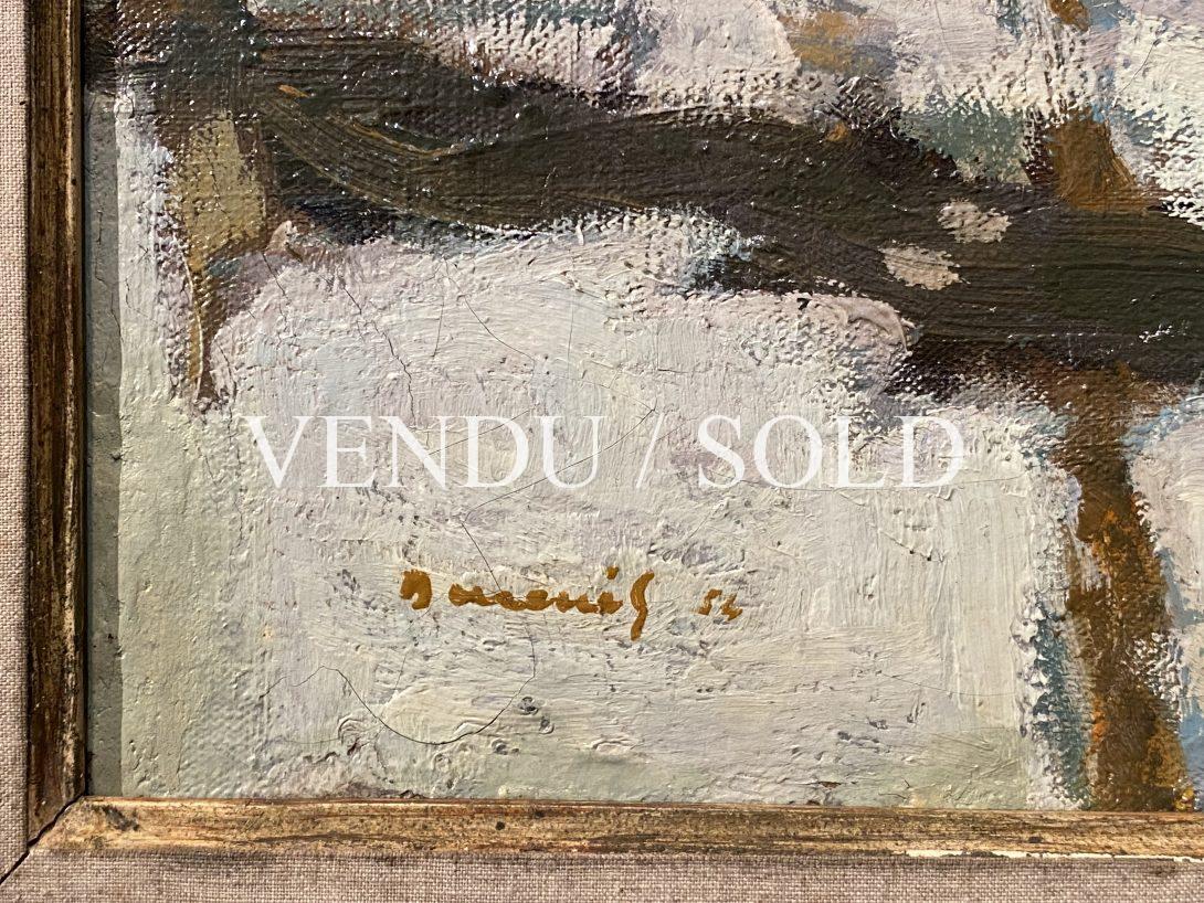 Sa première exposition a eu lieu à la galerie Van Rick en 1951. S’ensuivront des vernissages en 1961 et 1965 à la galerie Arthur Tooth à Londres en 1961 et 1965 dont nous citons la critique de Noel Barber issue du catalogue d’exposition joint à notre tableau: