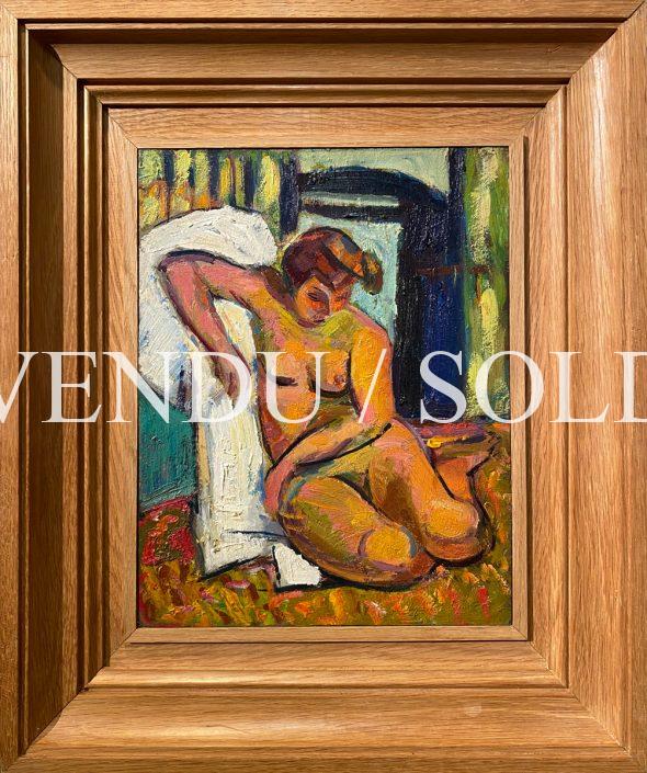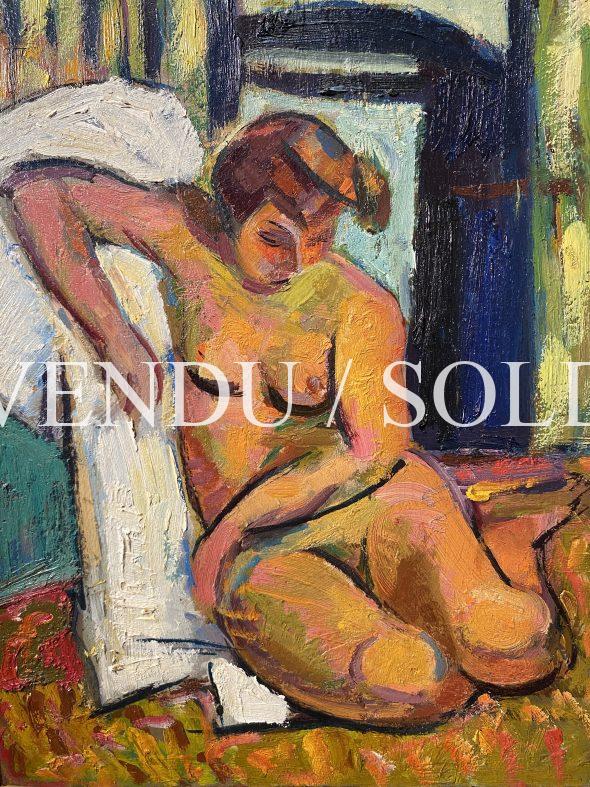 Cette phrase prononcée du vivant de l’artiste souligne bien les caractéristiques de notre tableau. Un fauvisme prononcé, aux couleurs chatoyantes, et un cubisme en plein épanouissement, maçonnant le corps de son modèle avec de larges aplats de couleurs roses et oranges et brossant avec fougue des structures bien visibles. Les formes géométriques apparaissent ainsi, les couleurs et les perspectives s’éloignent du réel, recomposant avec une palette fauve le motif à sa vision, la vision vivante et exaltée d’un peintre ardent coloriste.