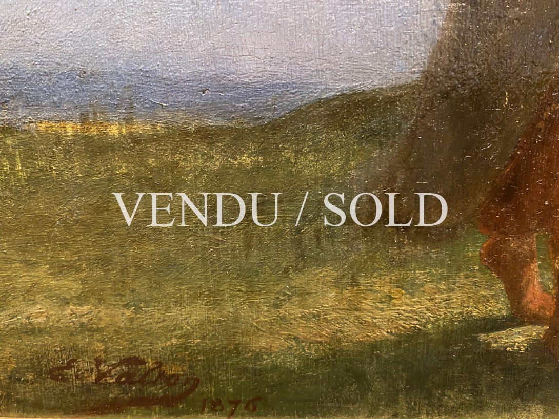 Huile sur panneau signée en bas à gauche, datée 1876
