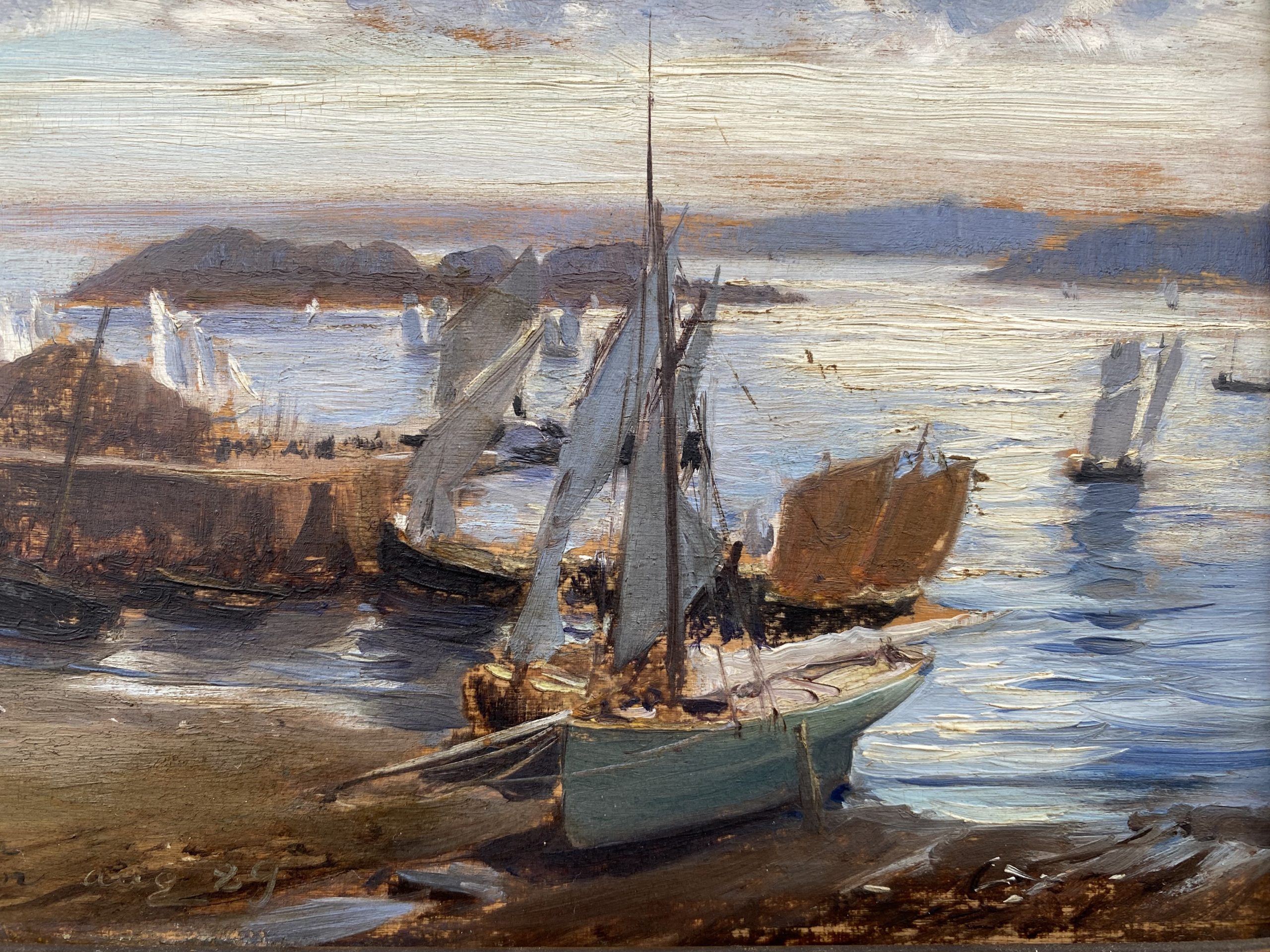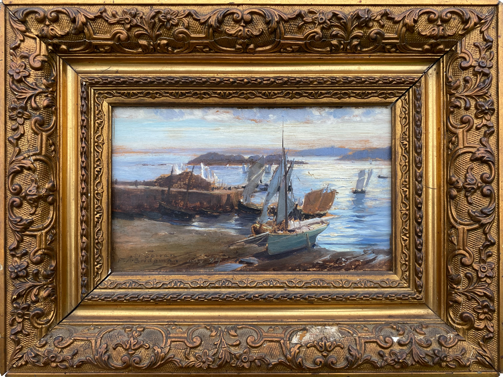 Huile sur panneau signée, datée aug. 89 (August 1889) et située à Saint Servan